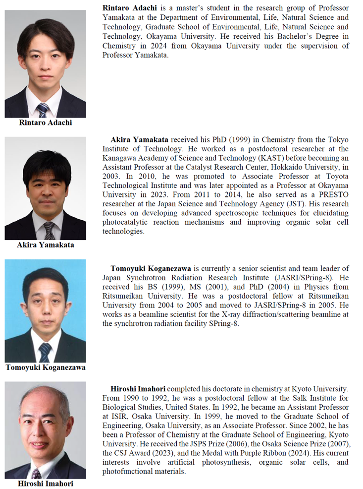 Tomokazu Umeyama1, Motohisa Kubota2, Haoxuan Zhang2, Rintaro Adachi3, Akira Yamakata3, Tomoyuki Koganezawa4, and Hiroshi Imahori3 (1 University of Hyogo, 2 Kyoto University, 3 Okayama University, 4 Japan Synchrotron Radiation Research Institute)