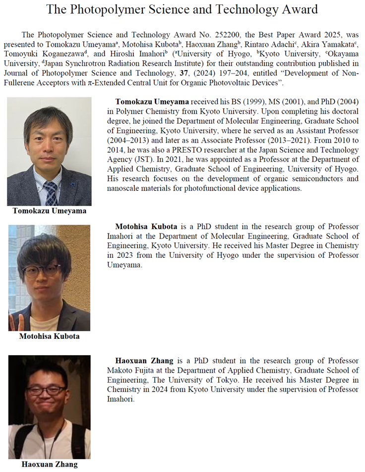 SPST "The Photopolymer Science and Technology Award" Ceremony Announcement